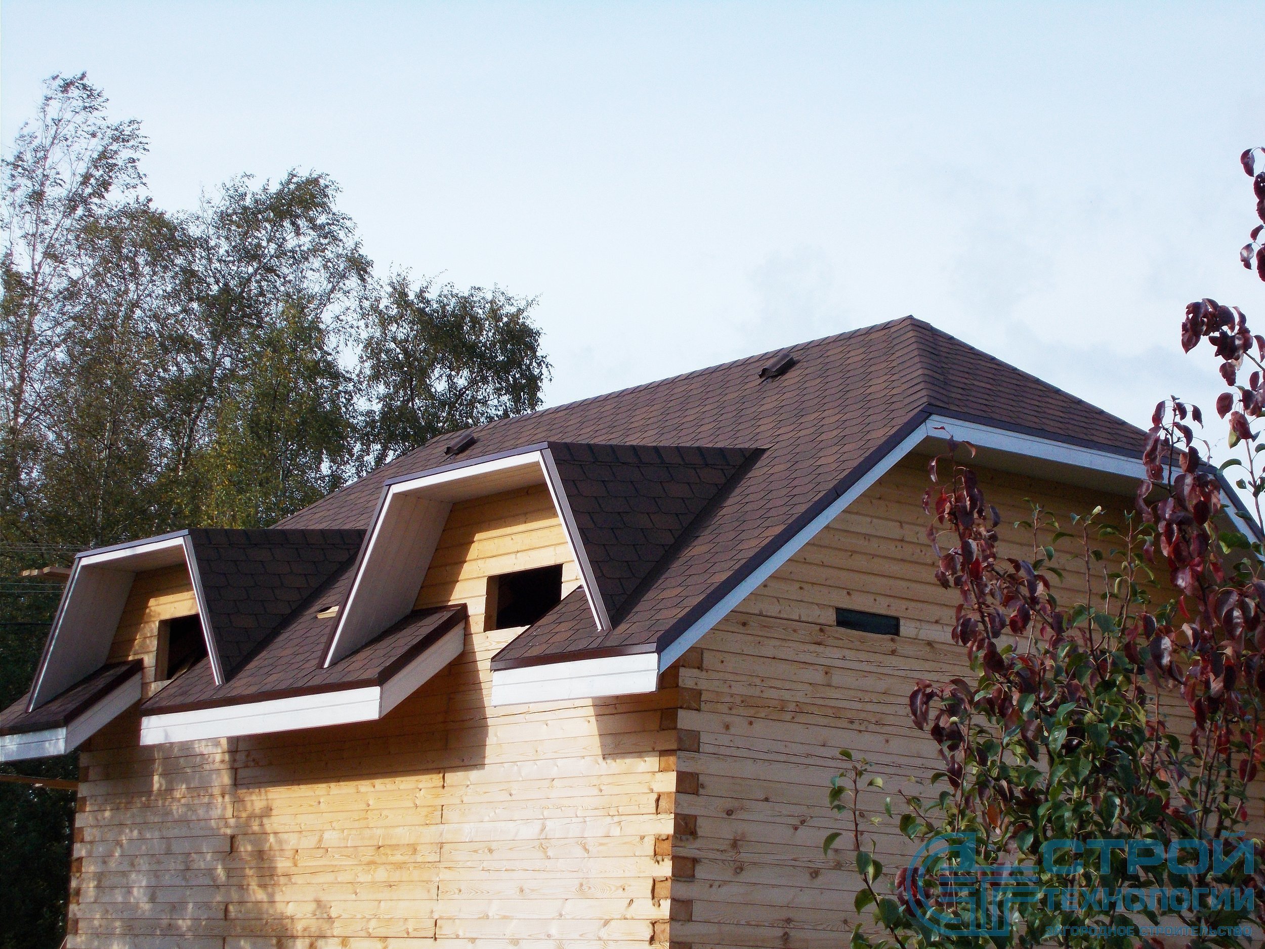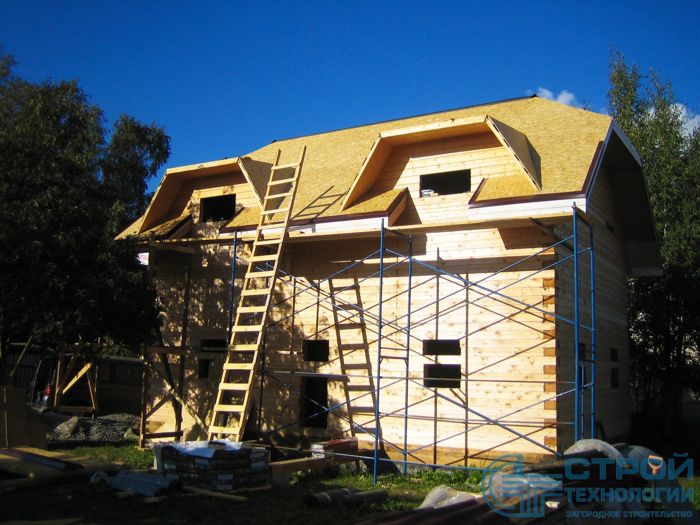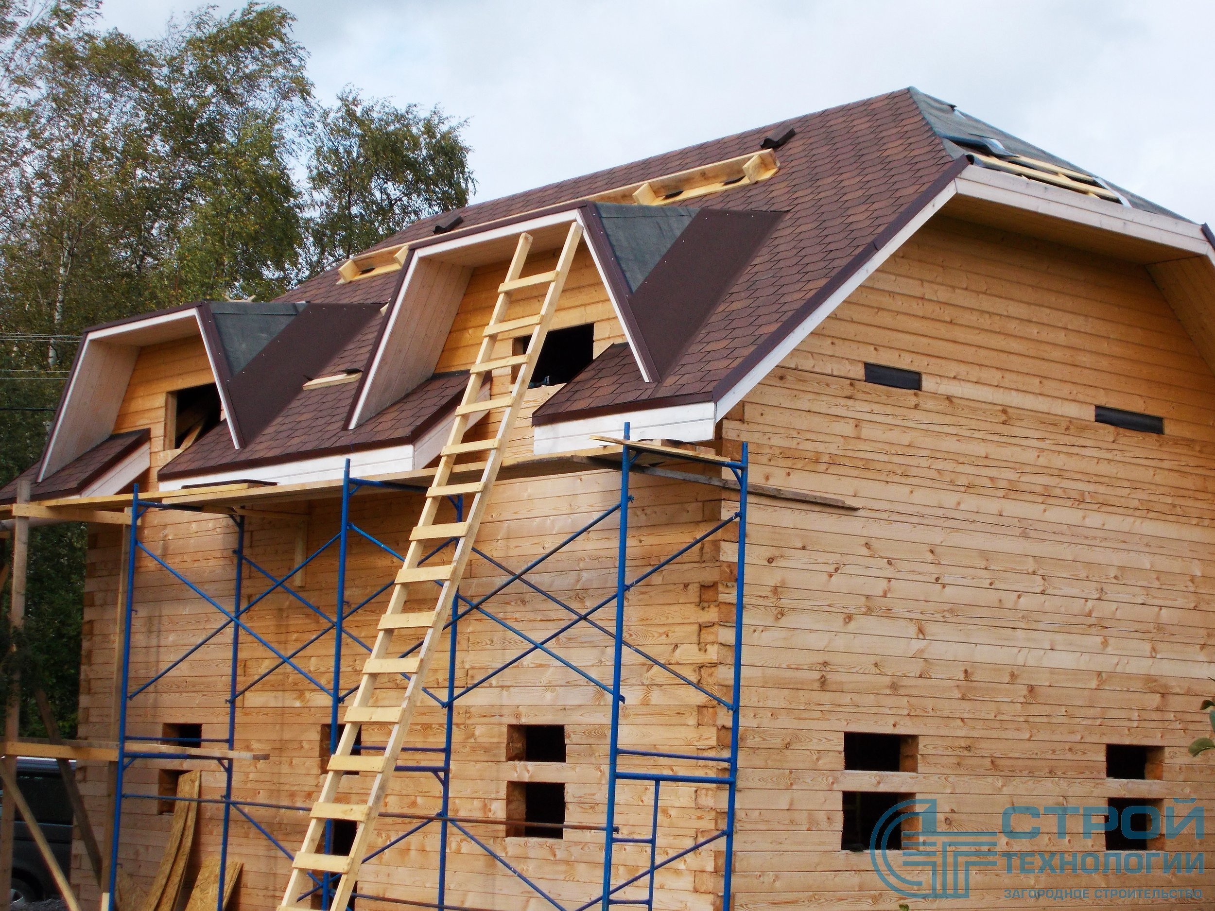 Кровельные работы в Гатчинском районе. Сруб из профилированного бруса 6х9 м.
