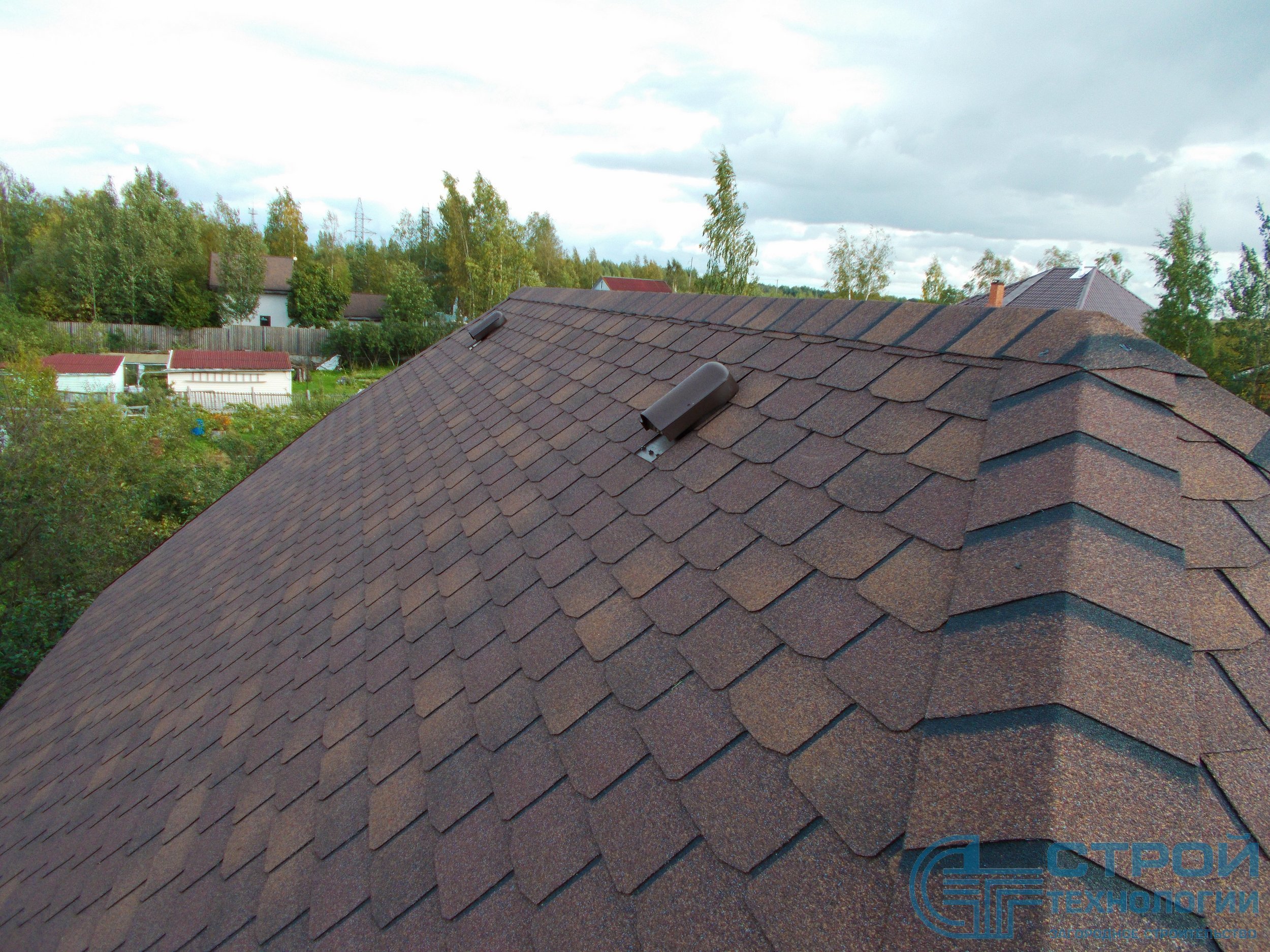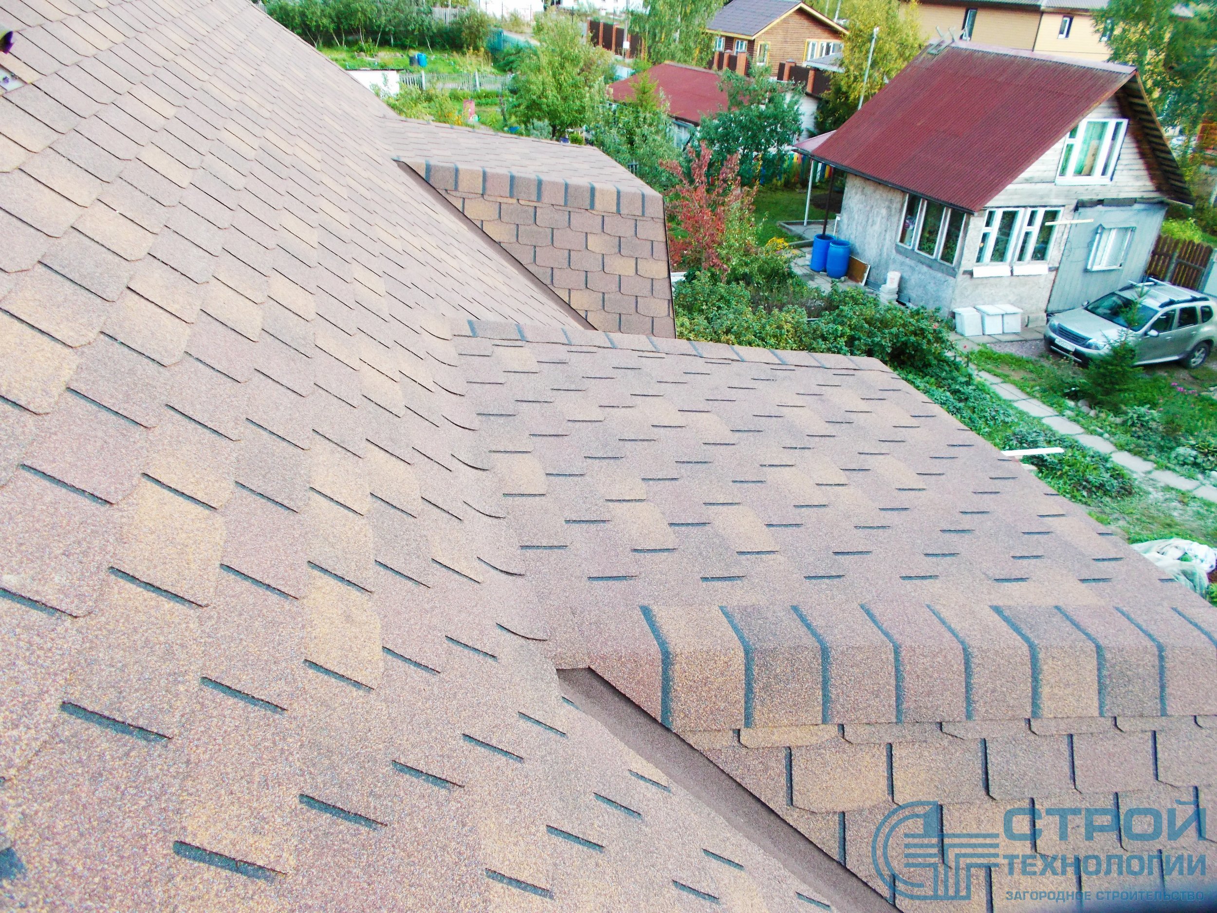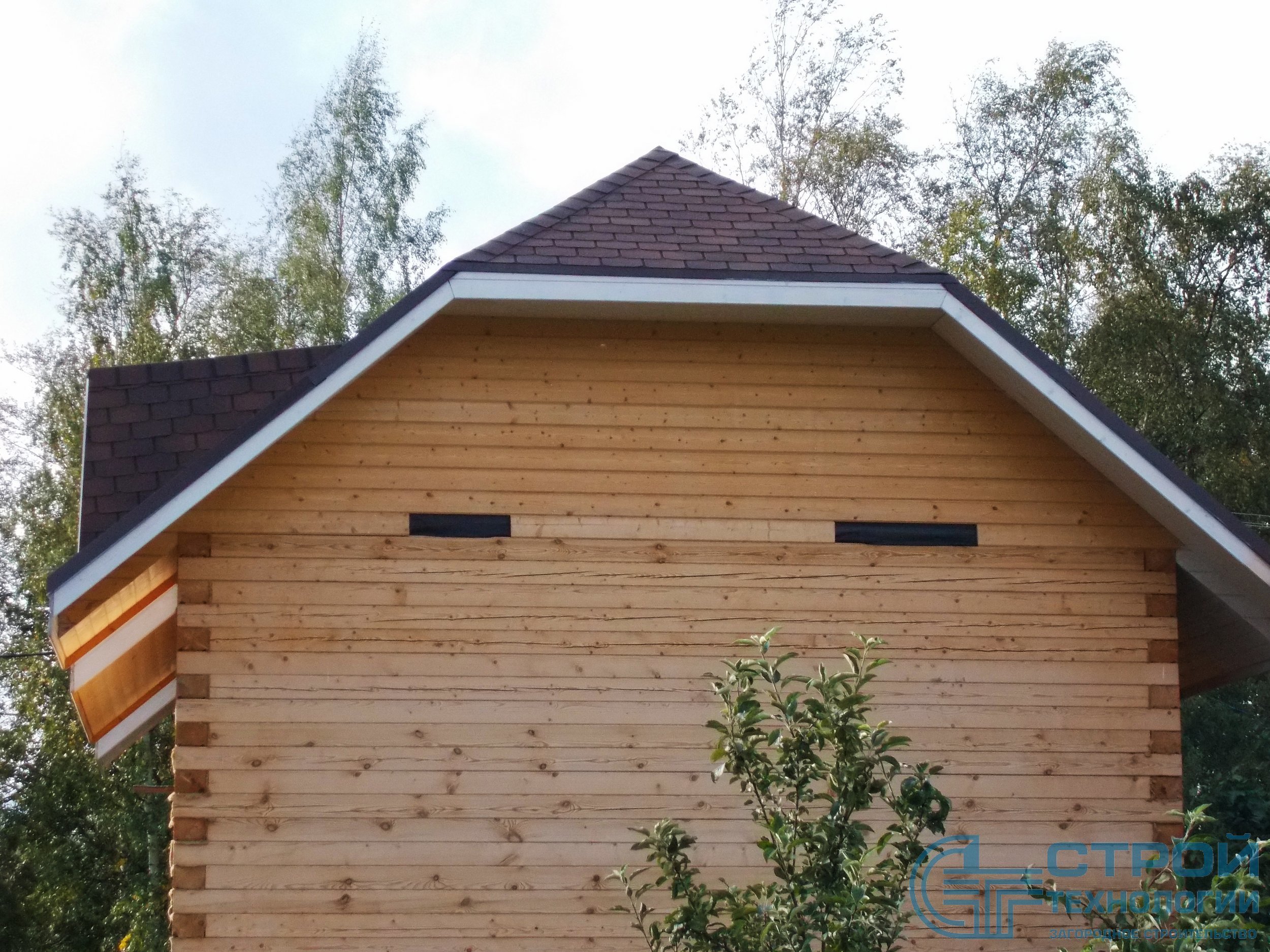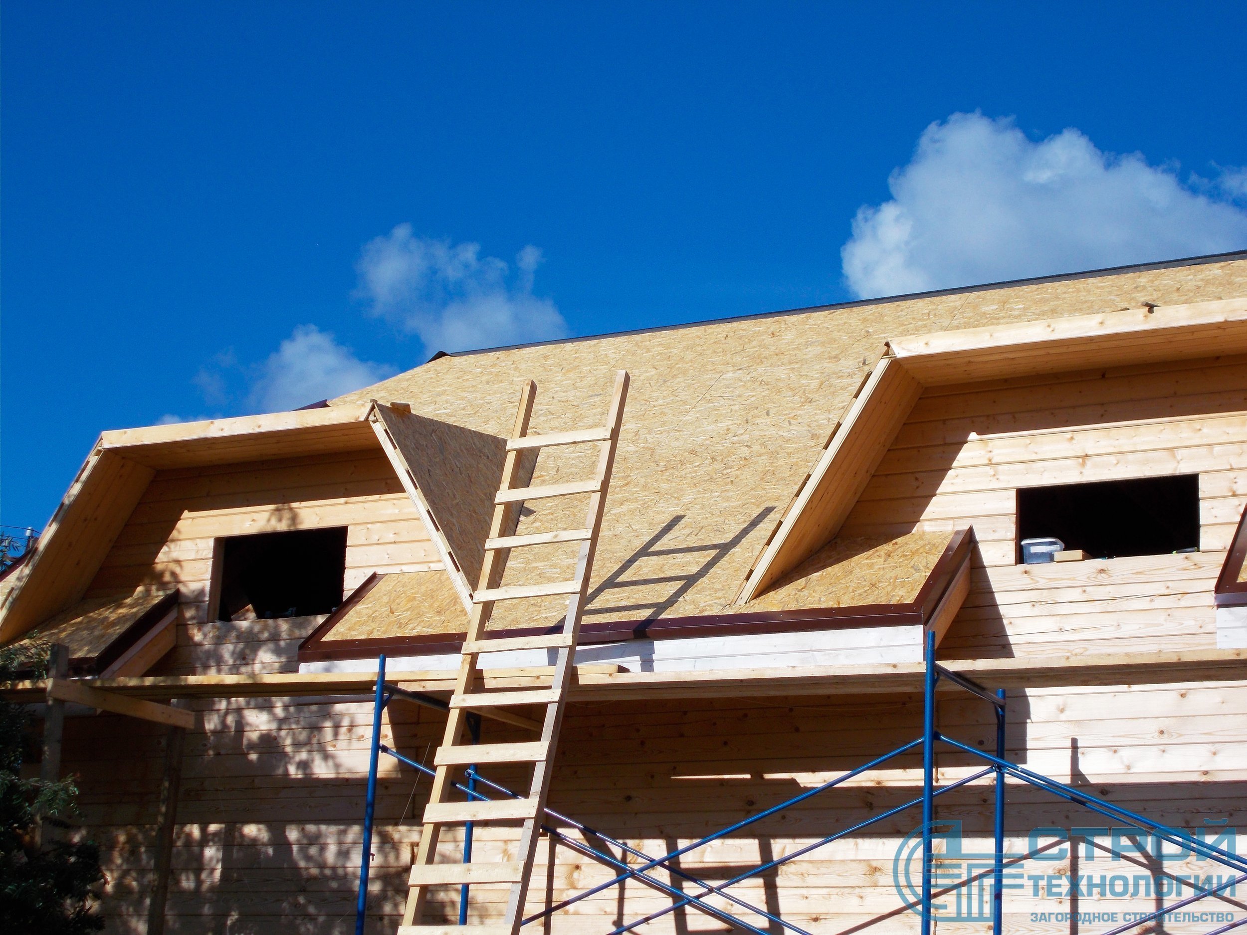 Кровельные работы в Гатчинском районе. Сруб из профилированного бруса 6х9 м.