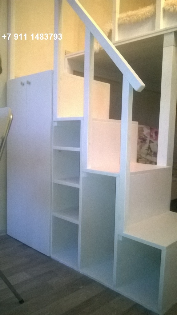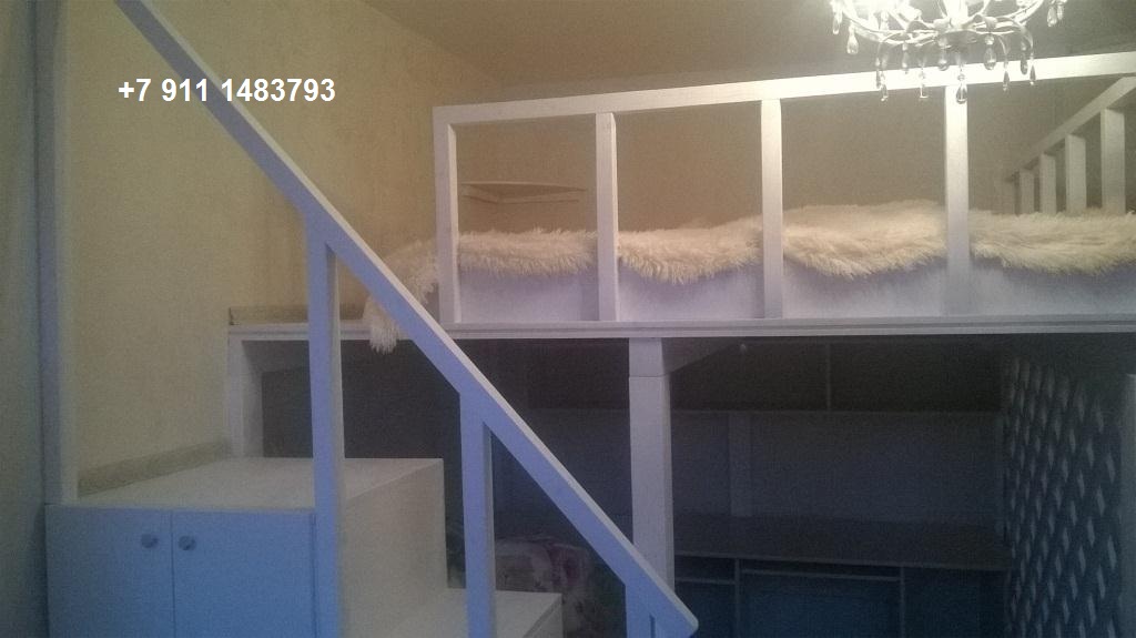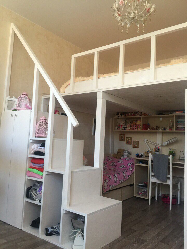 Второй ярус и лестница-полки в комнате на 5 Красноармейской