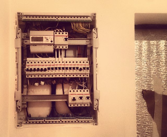 Укладка теплого пола шнуром, слаботочный щит, силовой щит, пример скрутки луженой
