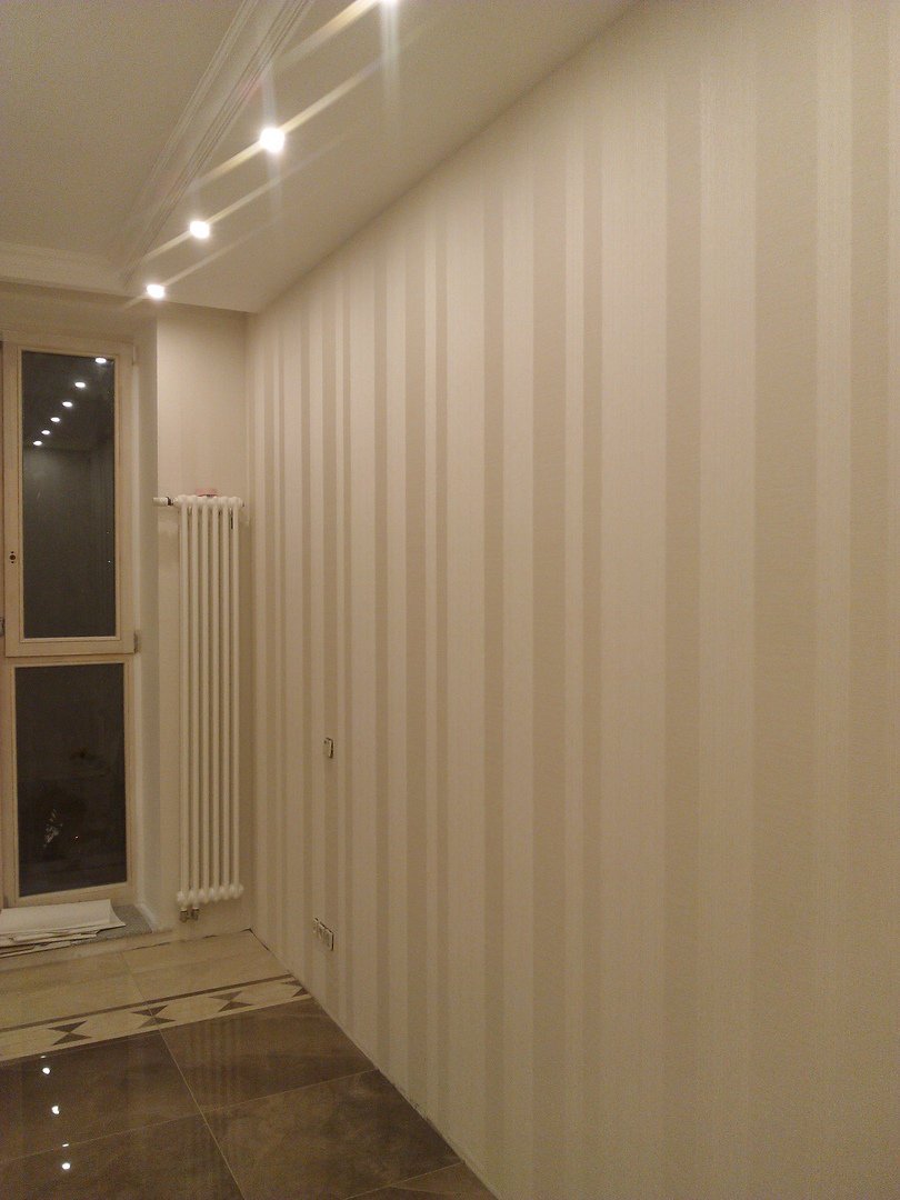 Поклейка обоев на подготовленные стены. Москва осень 2019.