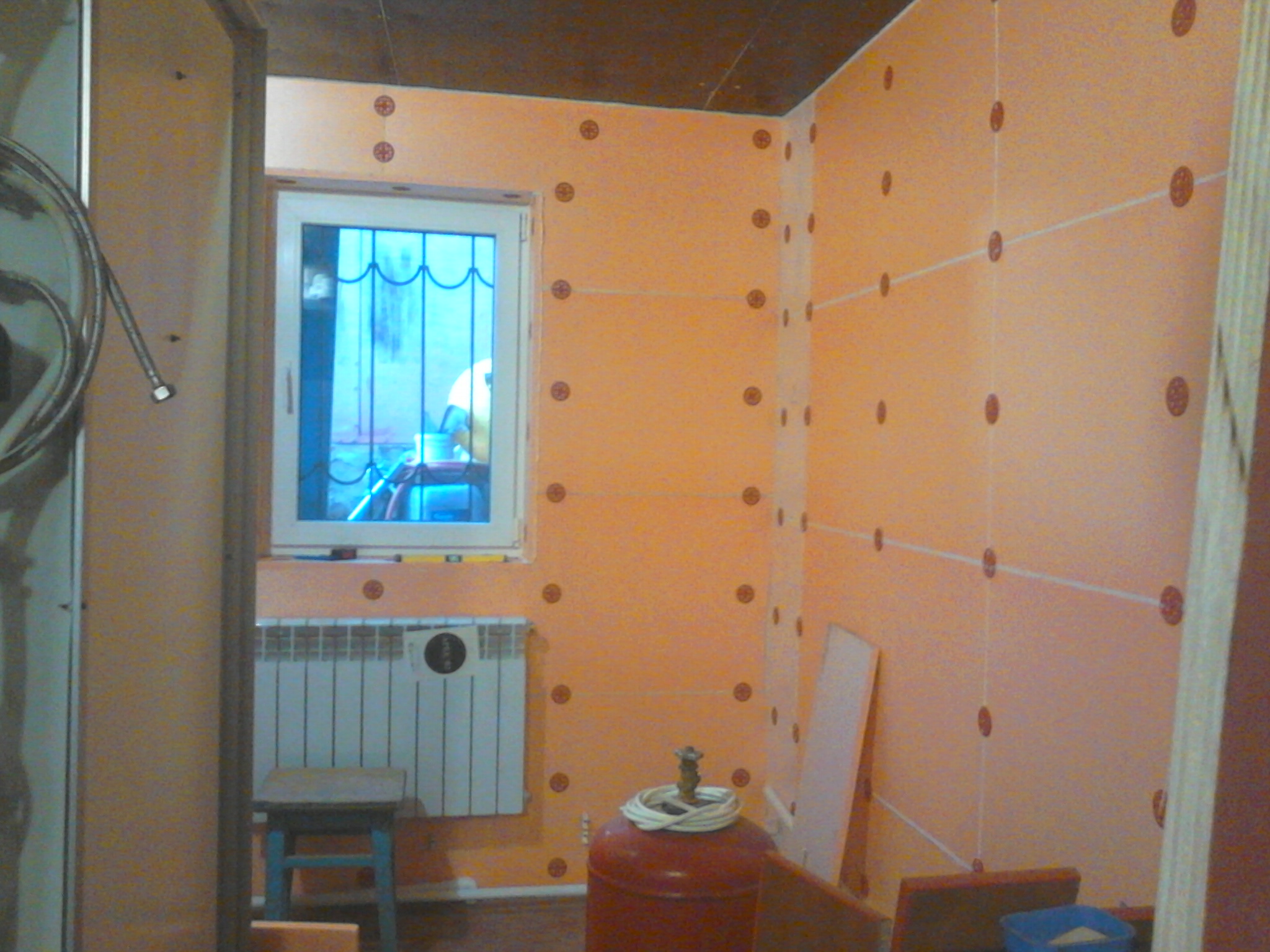 утепление стен,установка радиаторов и труб отопления