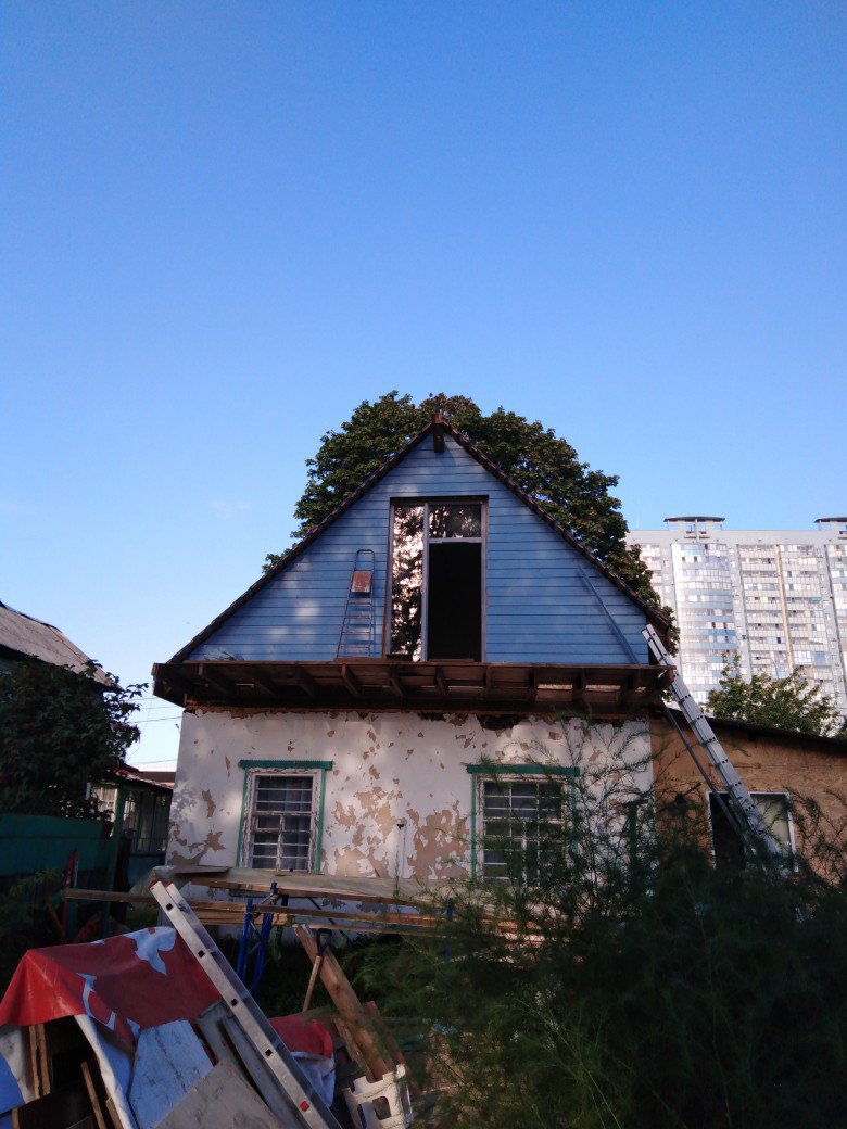 Снос старой крыши,строительство жилой мансарды(каркас)