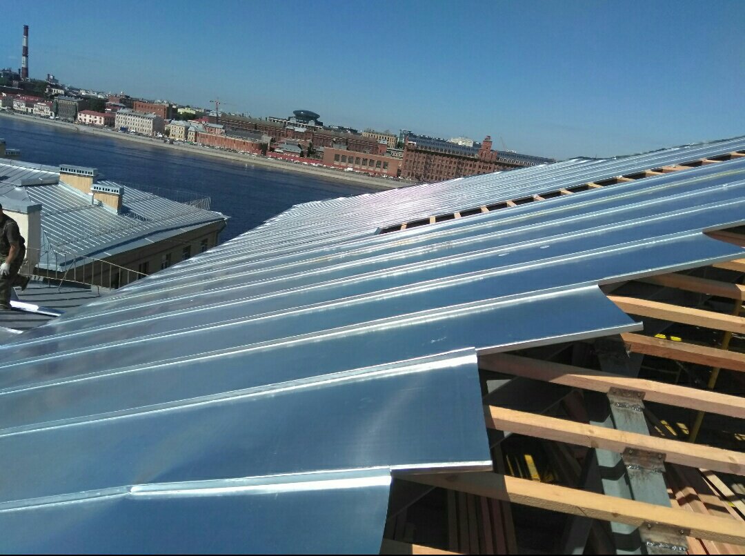 Сложная вальмовая фальцевая кровля,г. Санкт-Петербург, заказчик Военно-морская академия им. Адмирала флота Советского Союза Н.Г. Кузнецова.