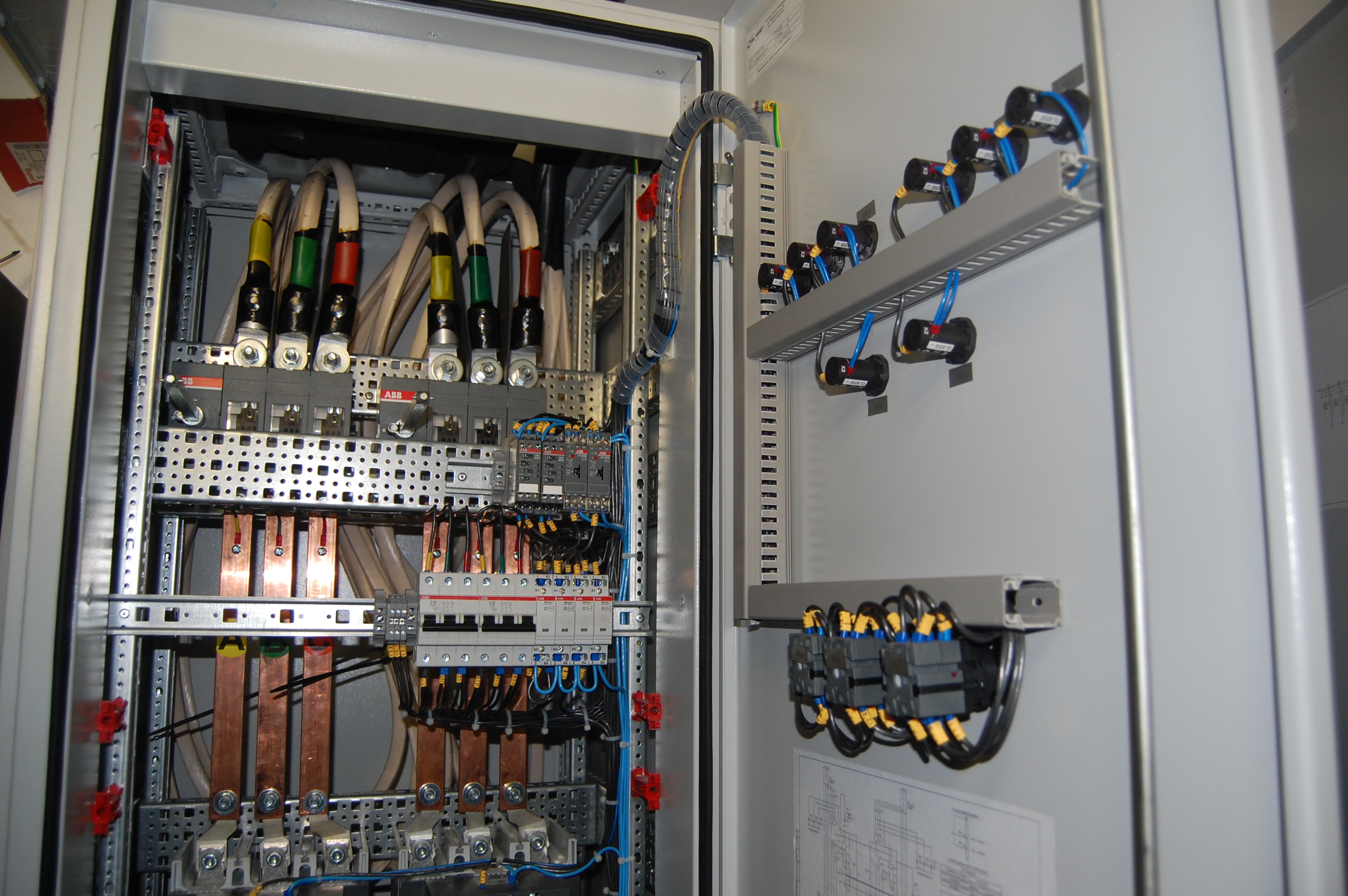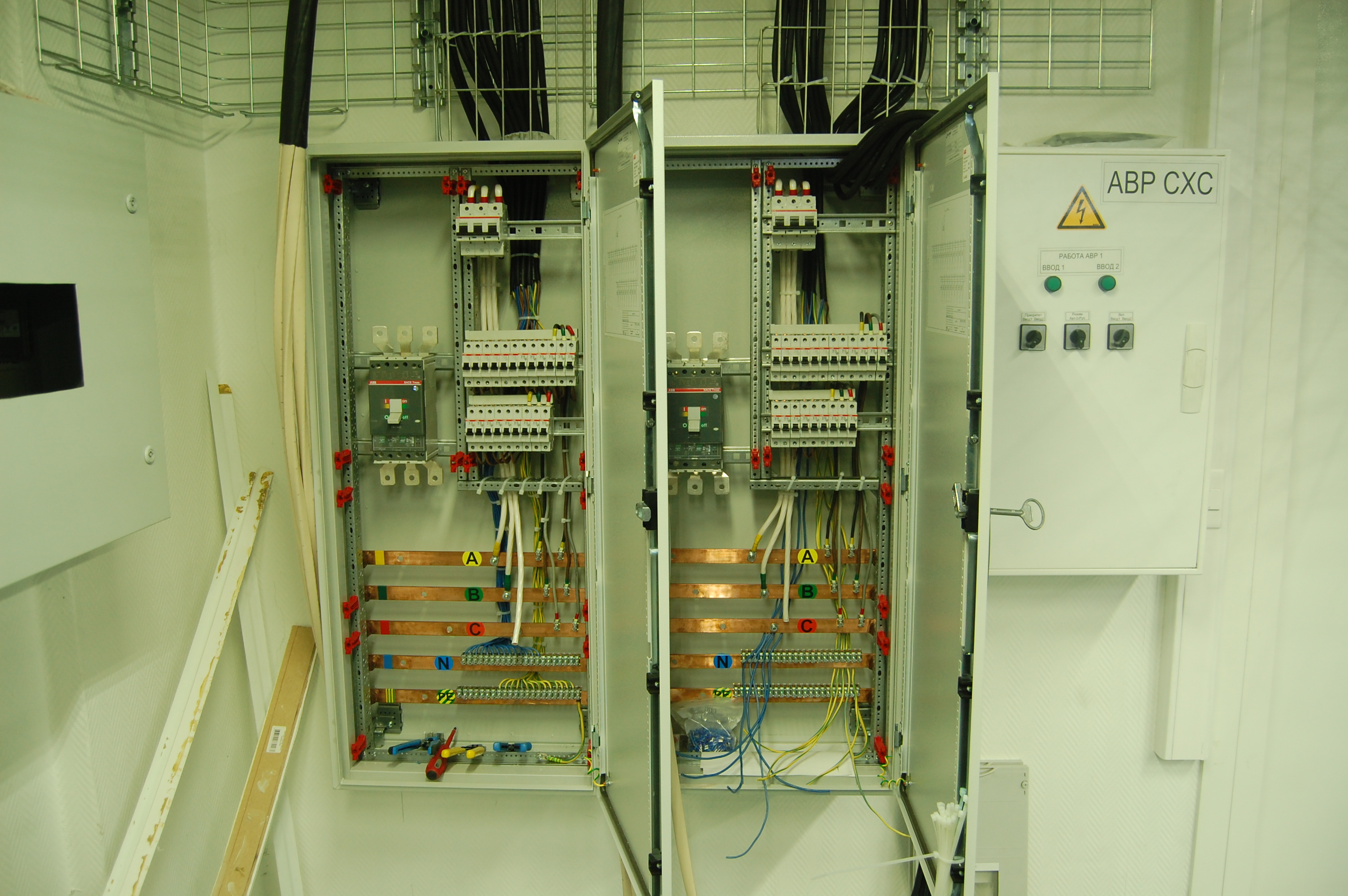 эл. шкафы, шкафы управления и автоматики, кабеля, лотки.