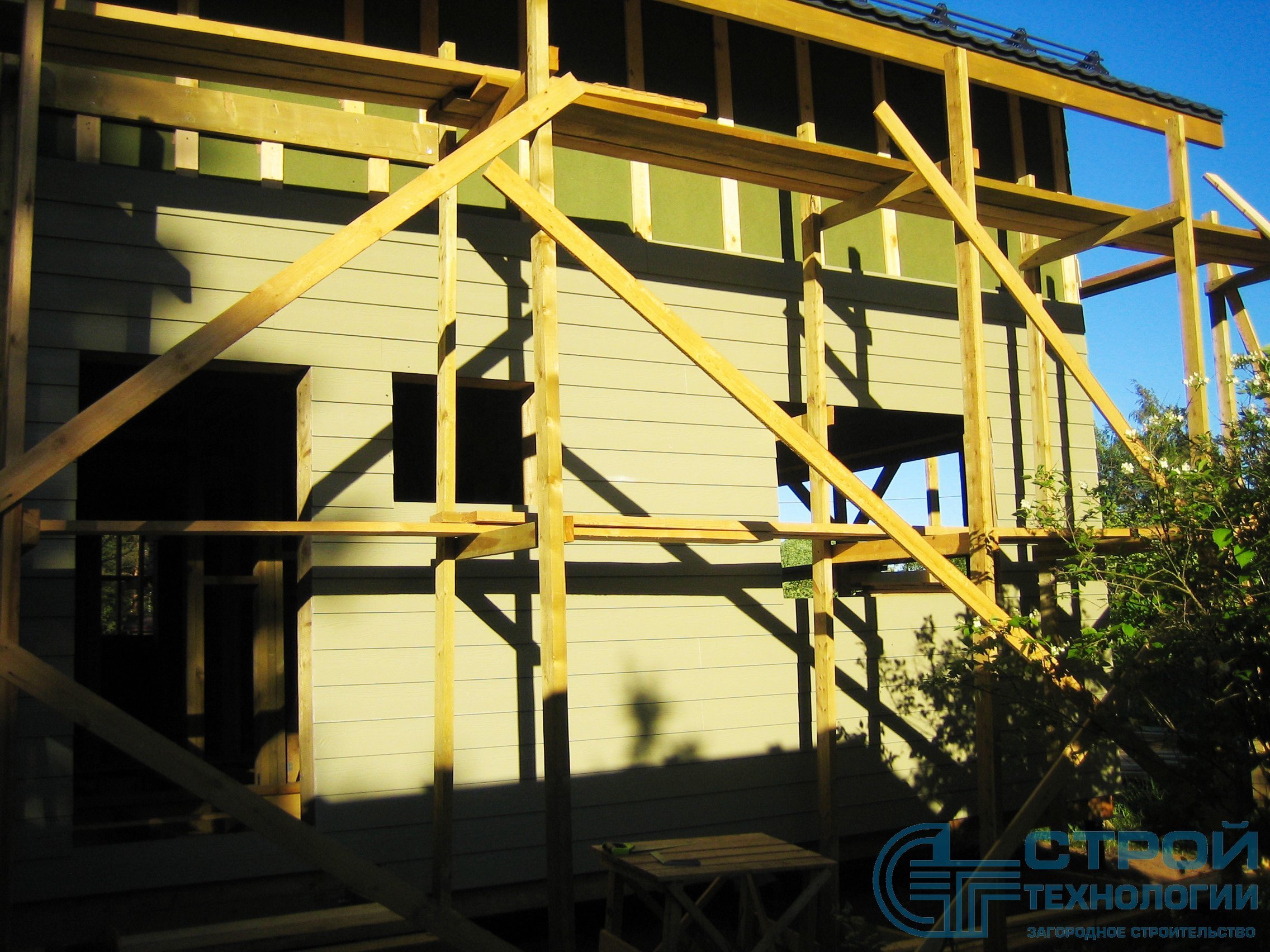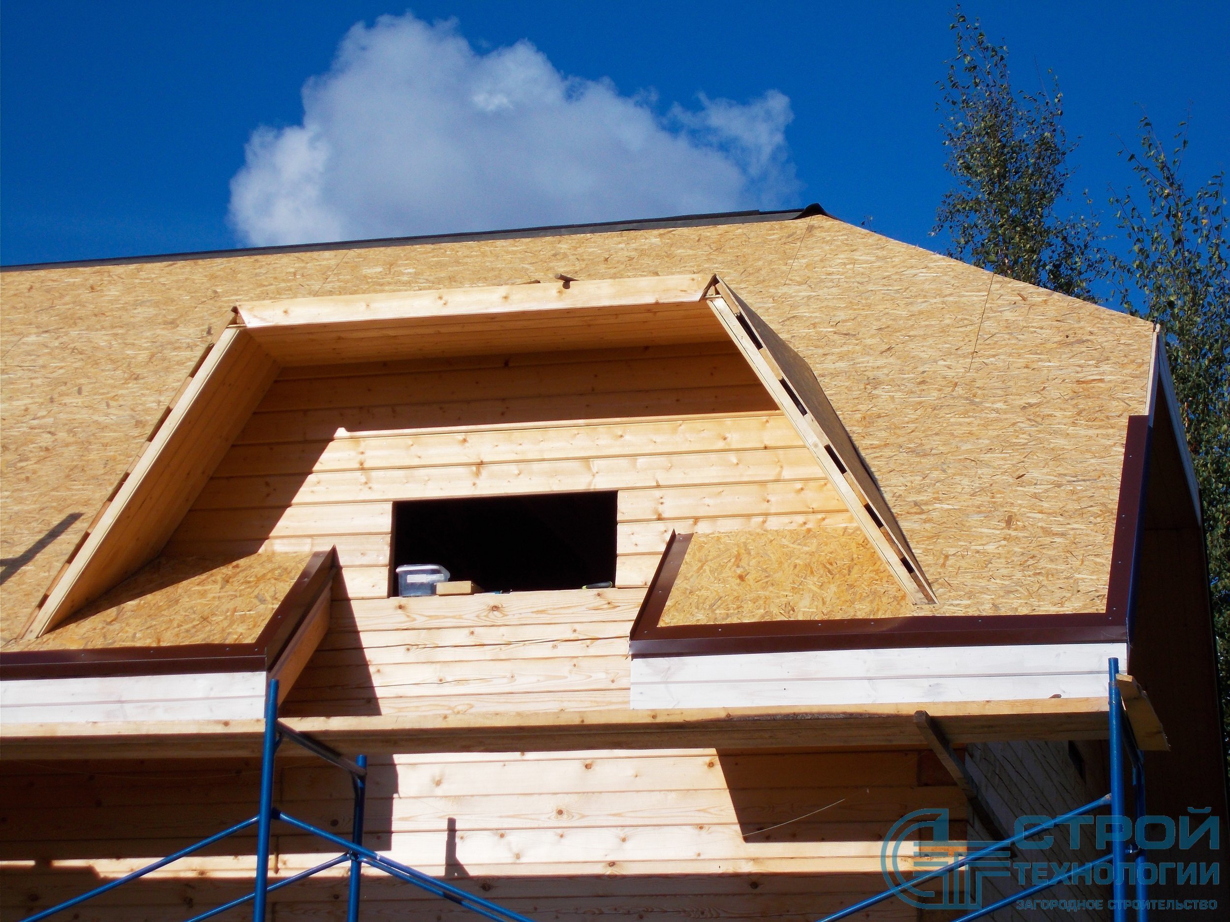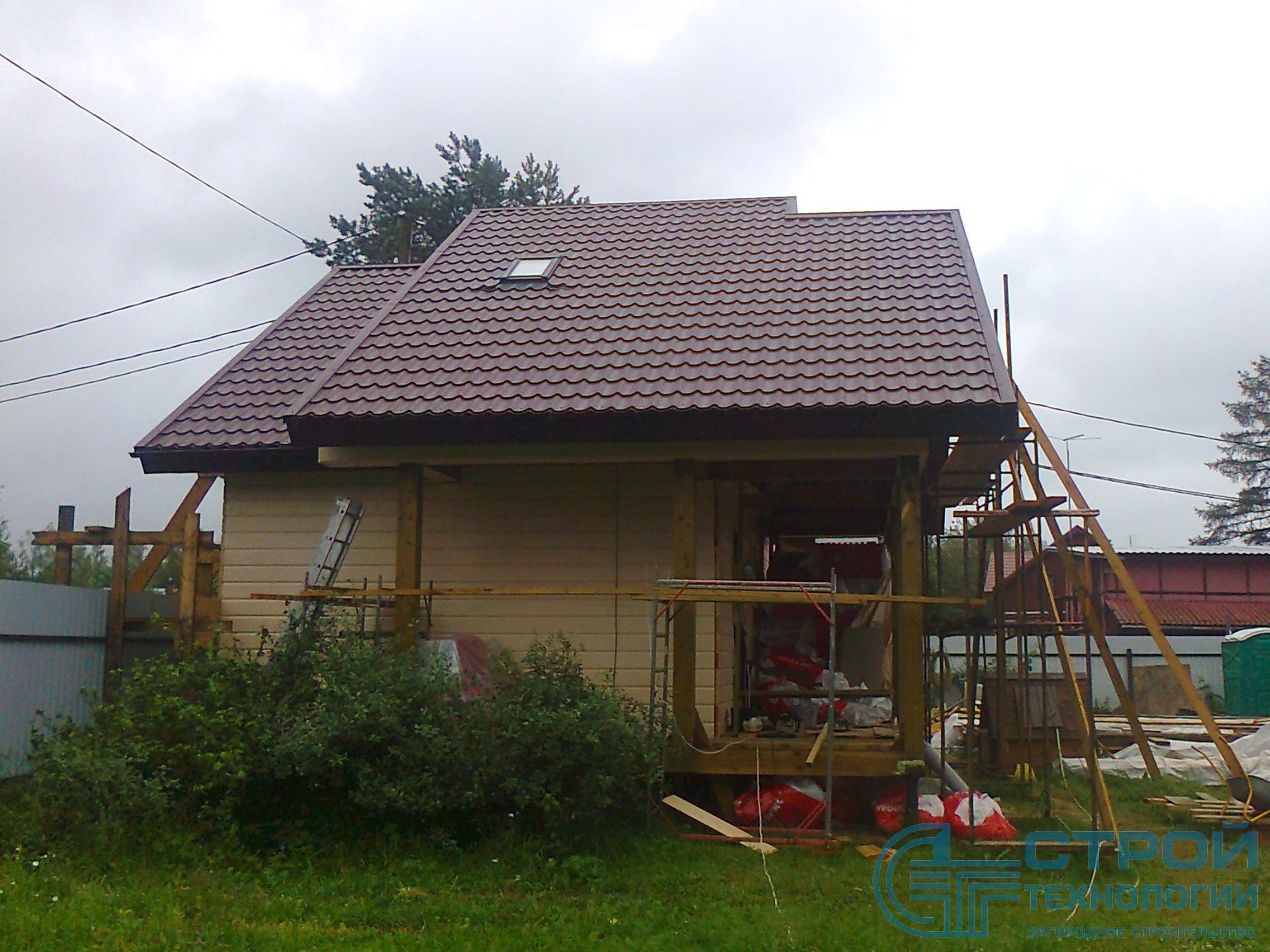 Кровельные работы в Гатчинском районе. Сруб из профилированного бруса 6х9 м.