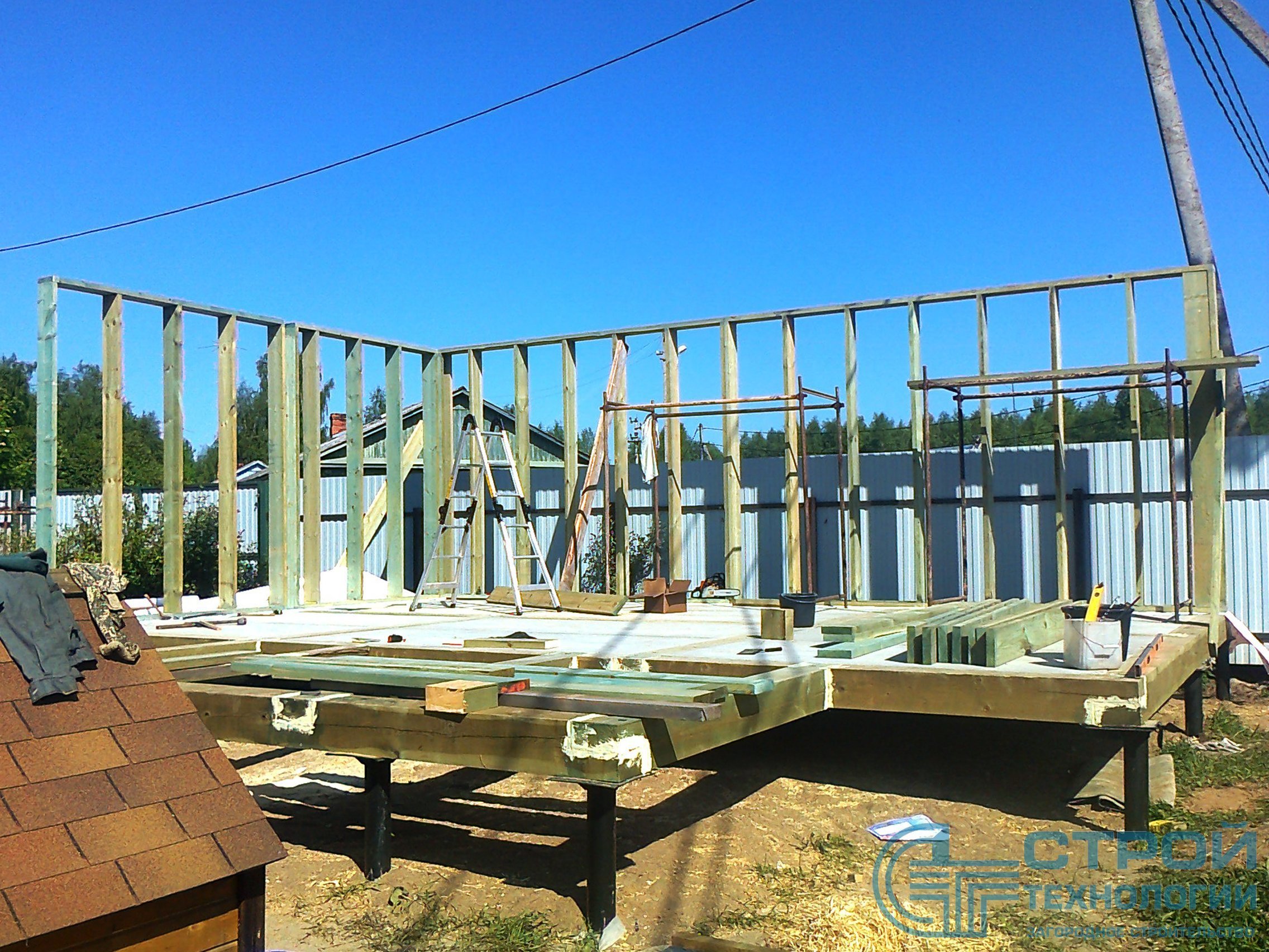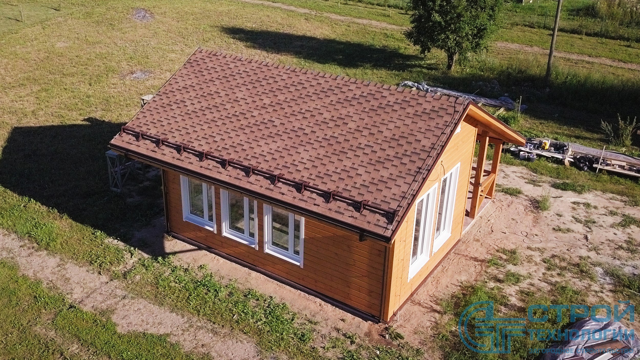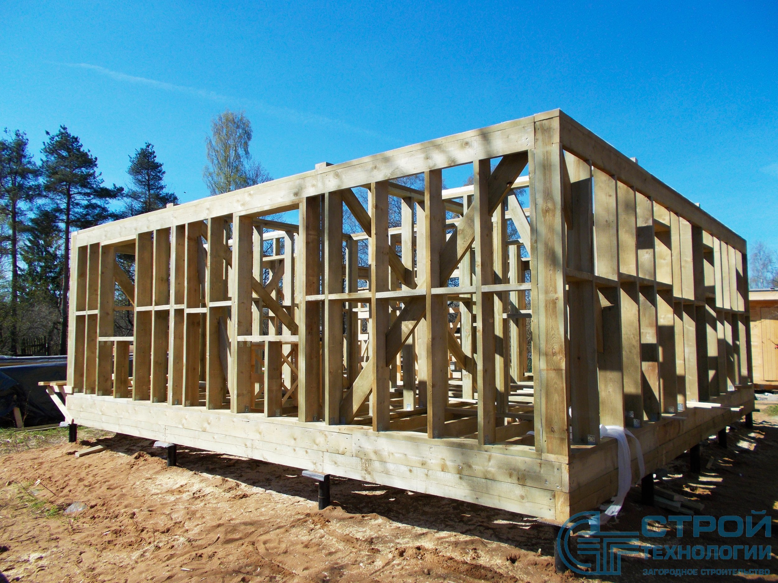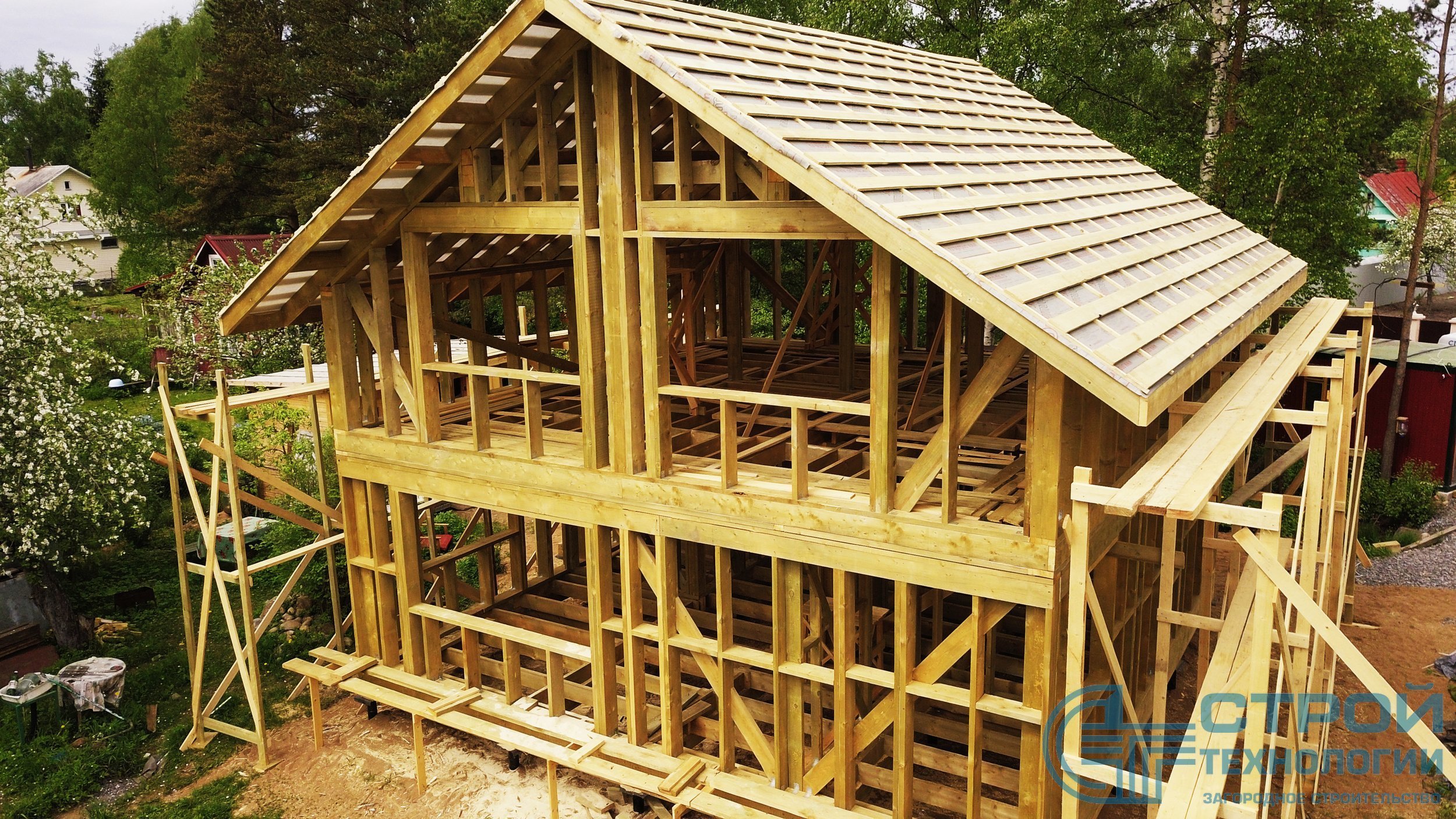 Кровельные работы в Гатчинском районе. Сруб из профилированного бруса 6х9 м.