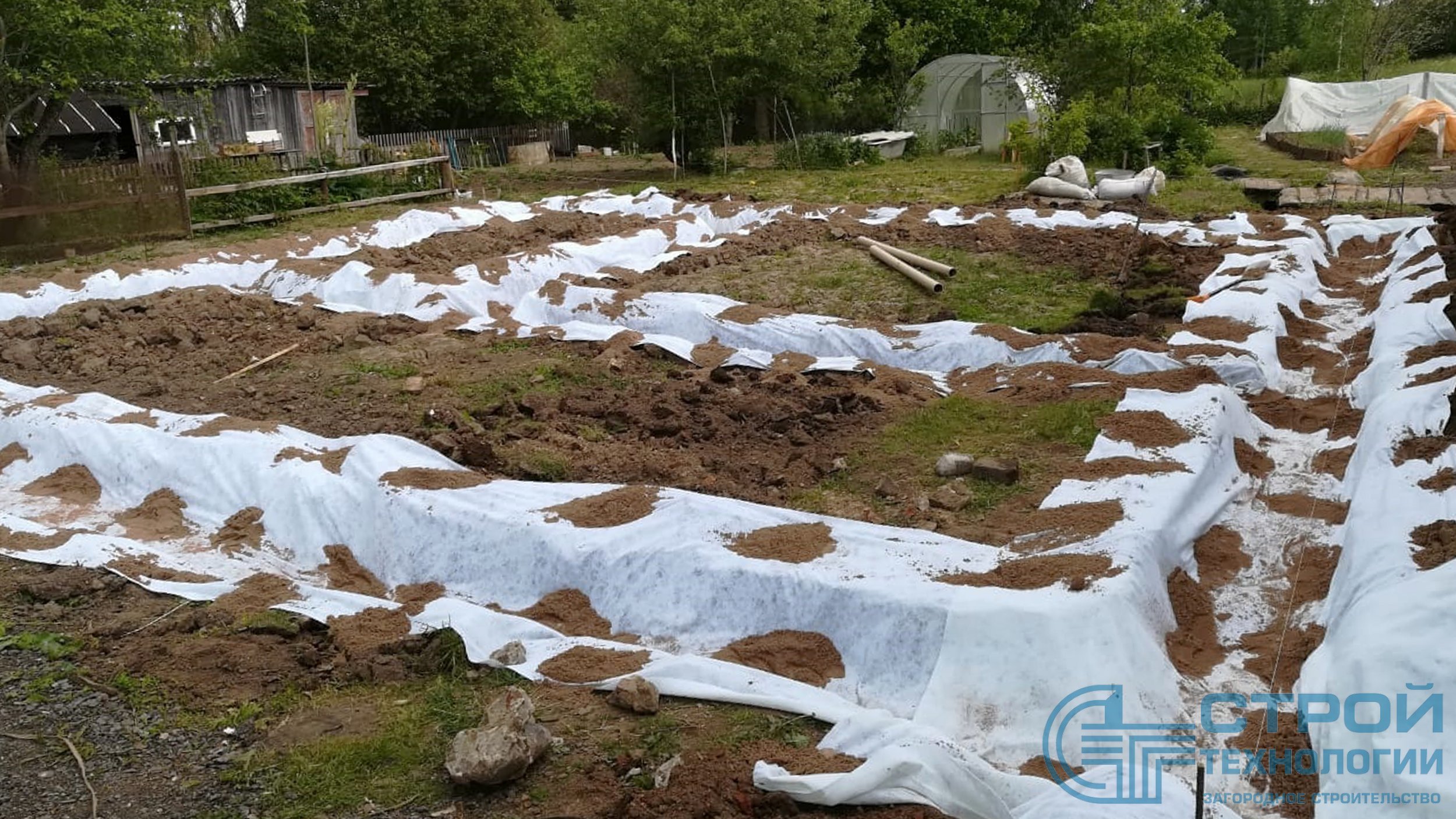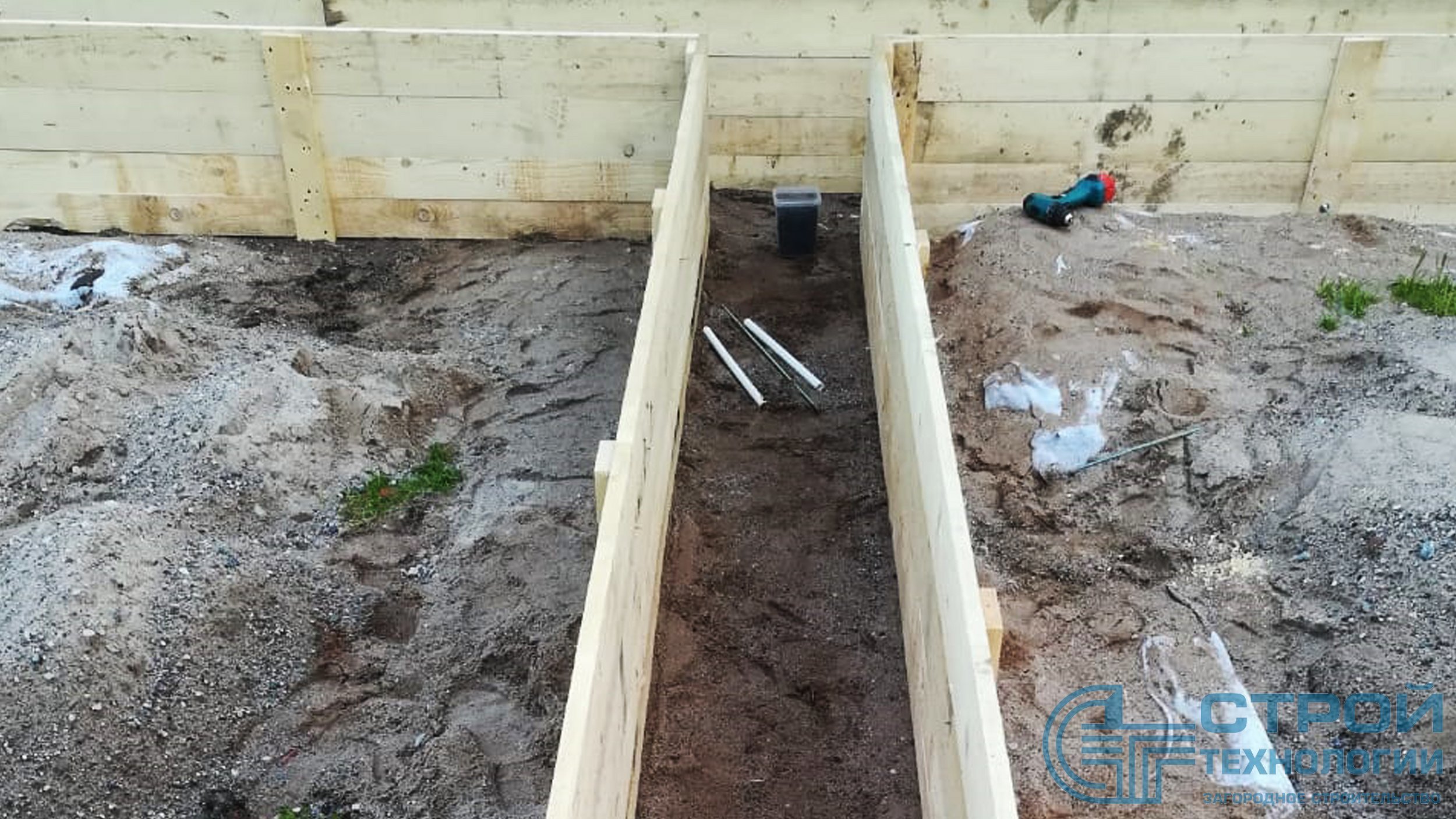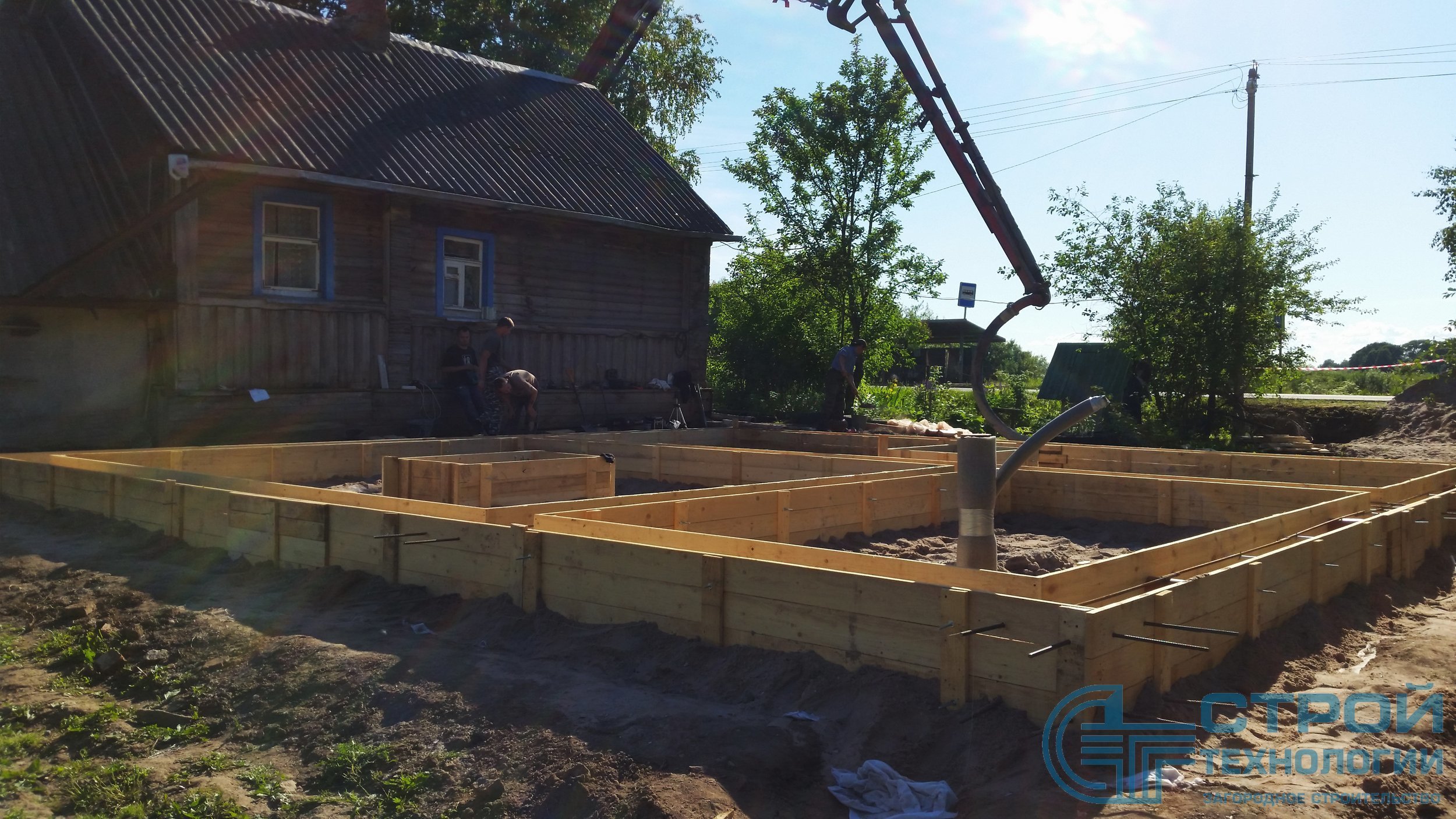 Ленточный фундамент 10х10 м под деревянный дом в Новгородской области.
