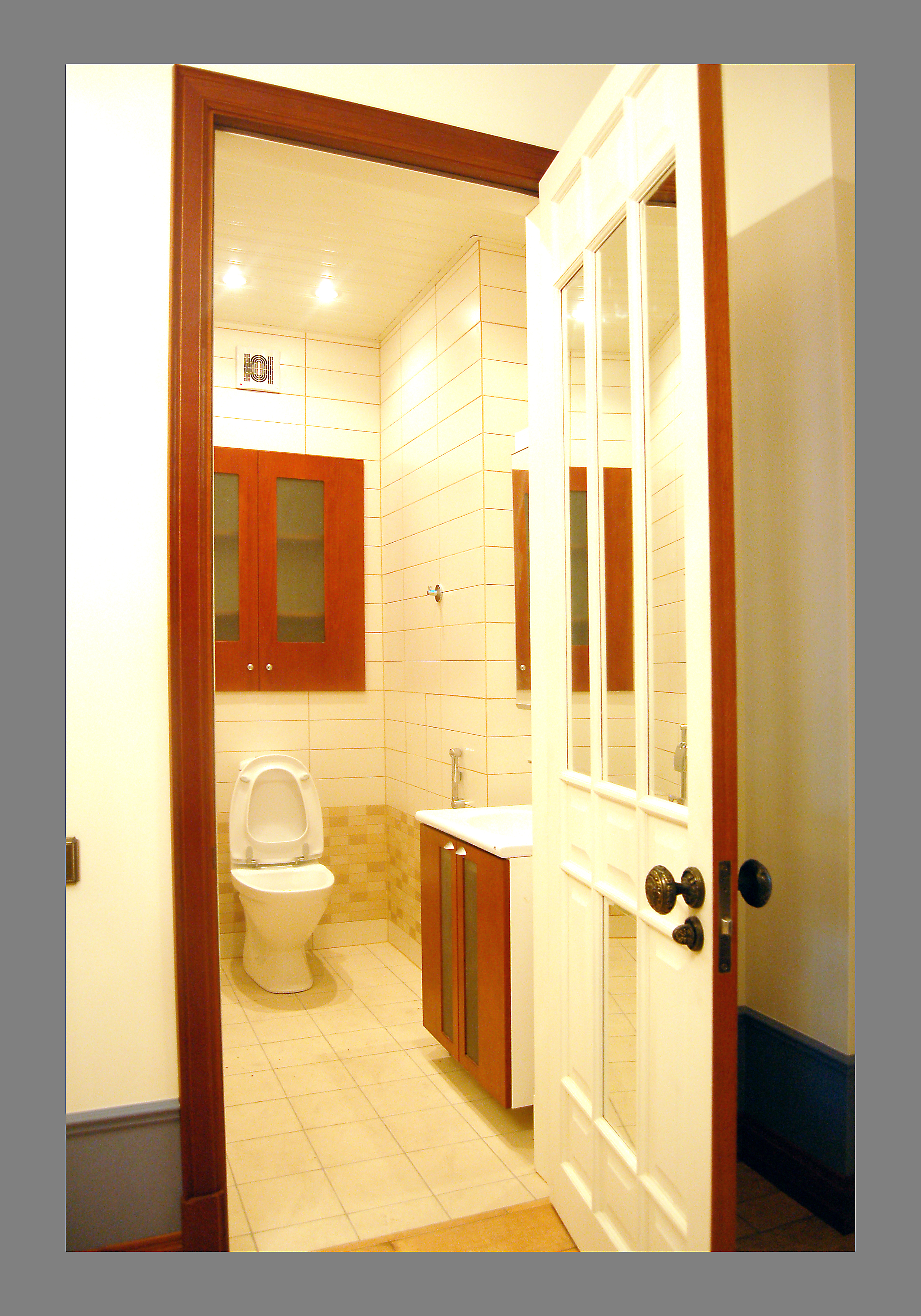 Крестовский остров, кв. 120 м. кв., отделка "под ключ". Туалет. Пол и стены - плитка. Потолок подвесной.