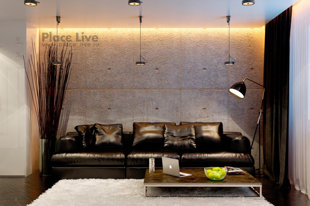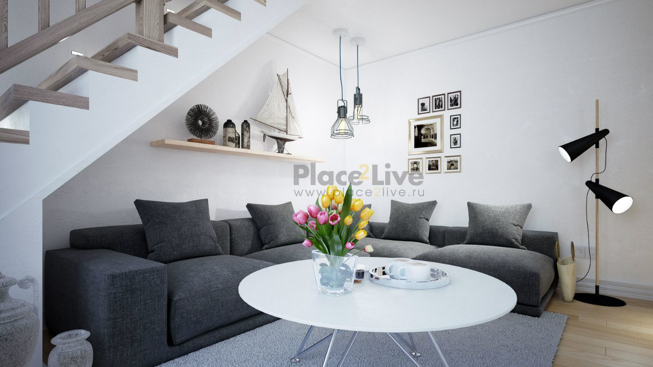 Визуализация гостинной,часть дизайн-проекта 2х уровневой крватиры в квартале "О2", Красногорск