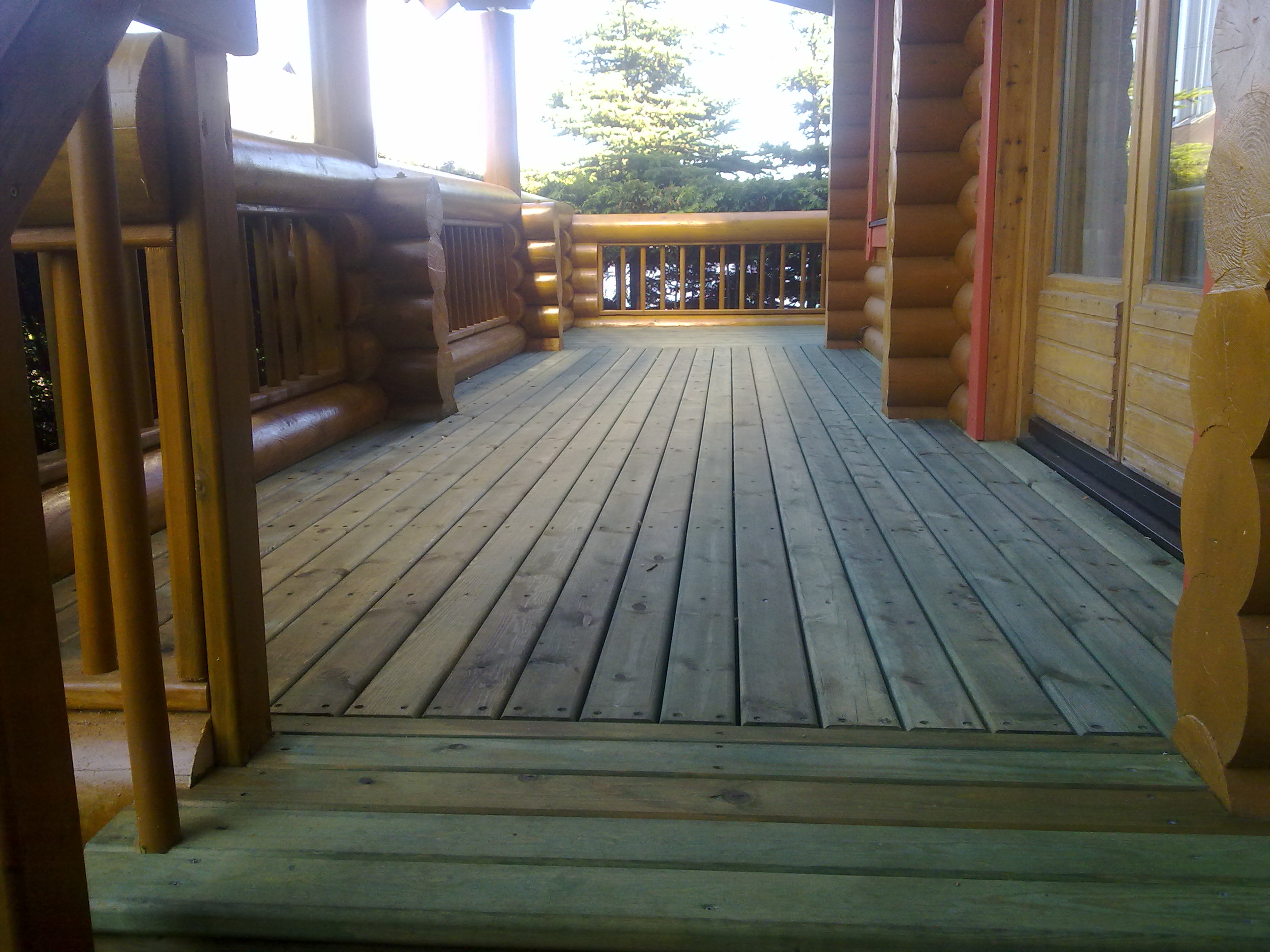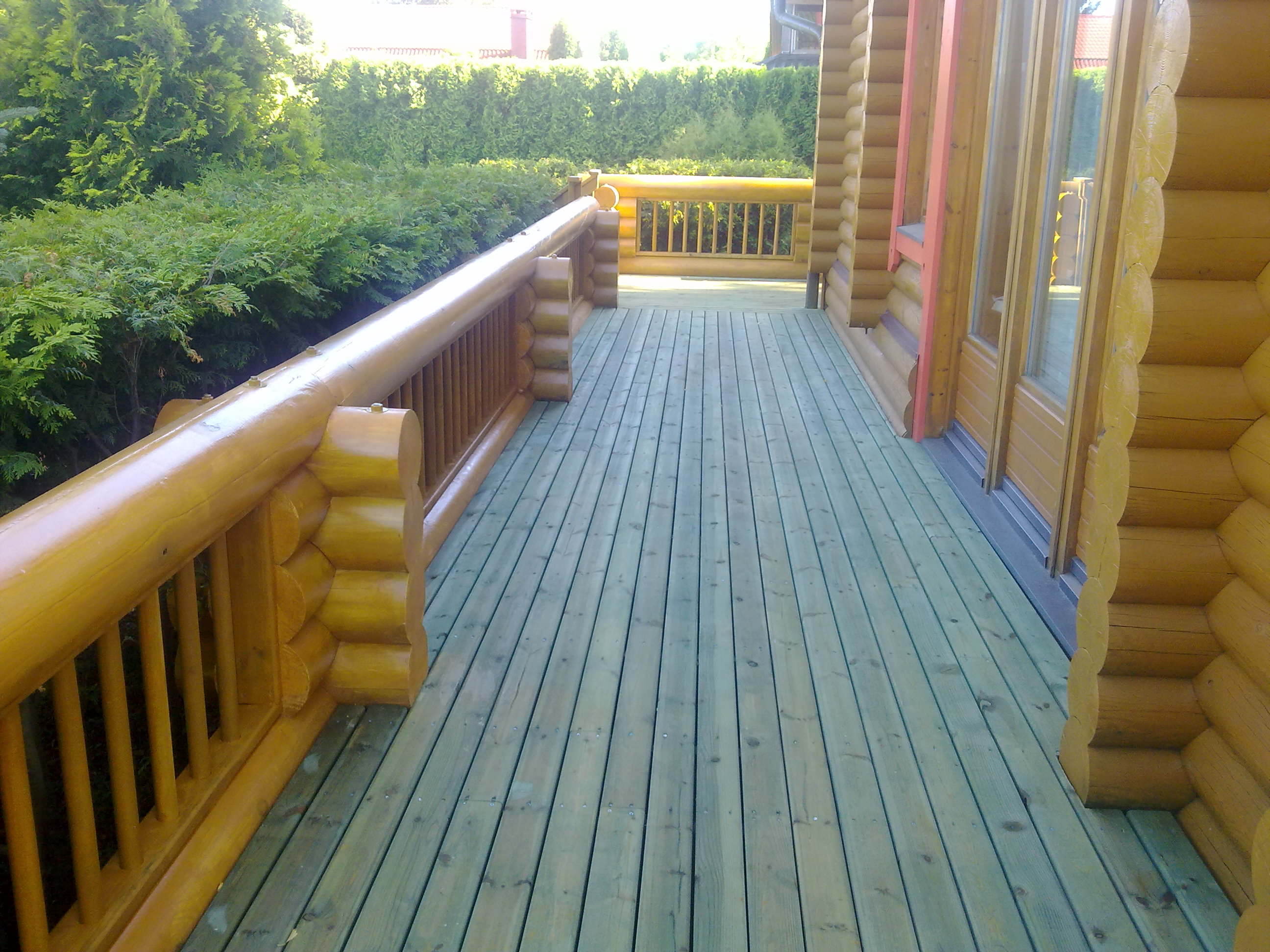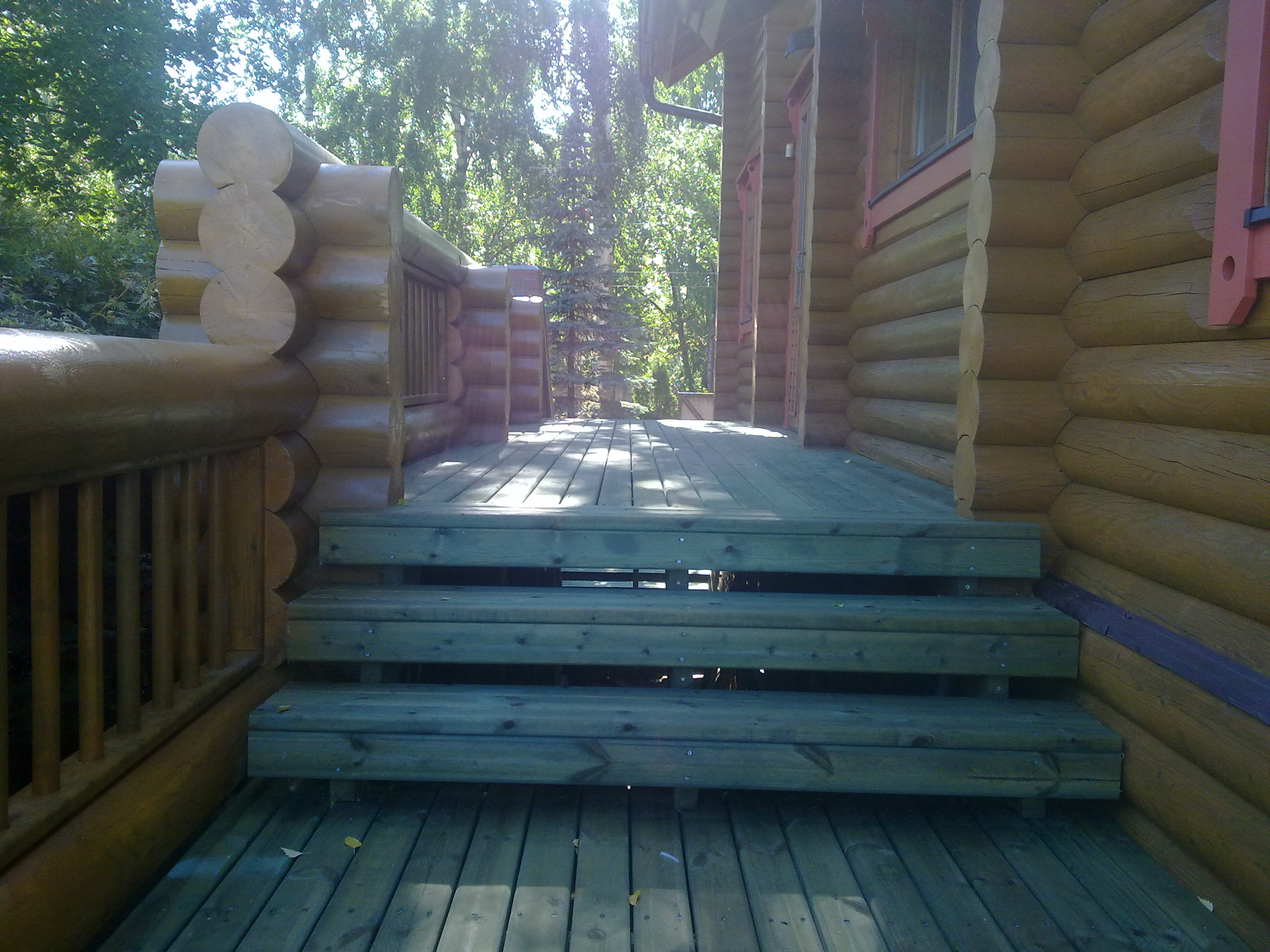 покраска дома,замена старых перил из бревна,монтаж терассы