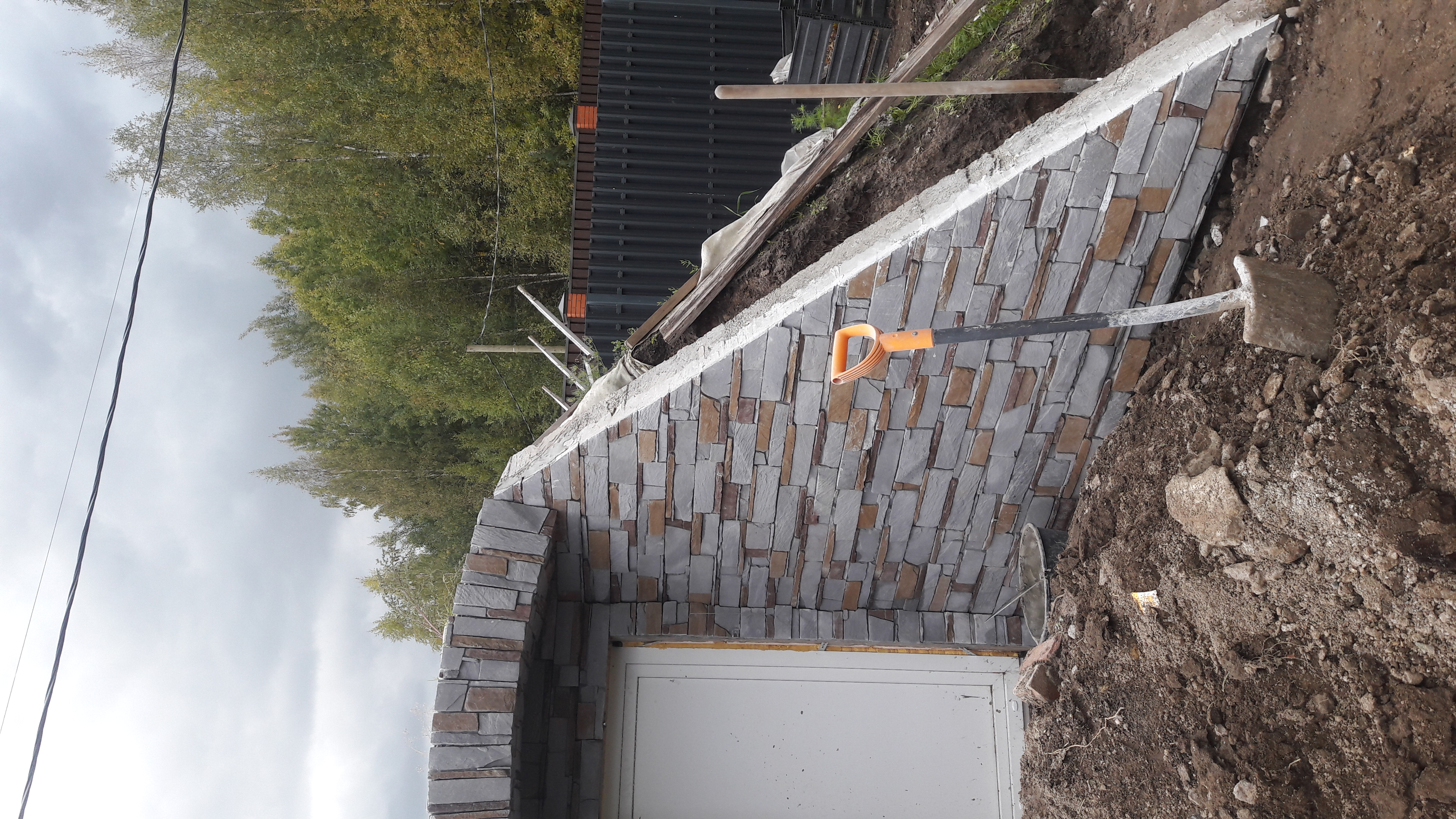 устройство заезда на участок с автопандусом на второй уровень участка с подпорными стенами