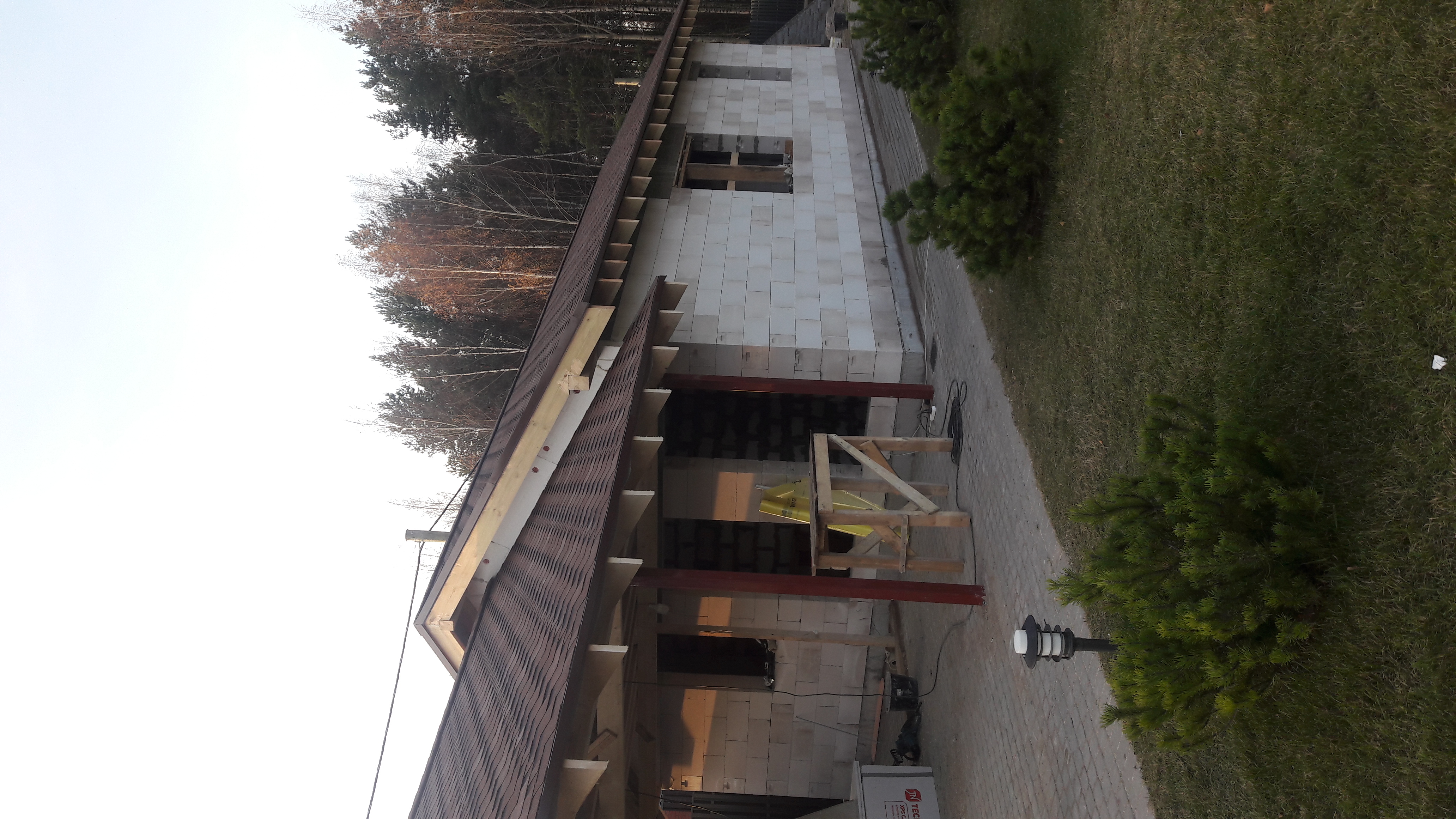 строительство здания из газобетона с навесом общей длинной 20 метров назначение баня , помещения для отдыха крытая терраса