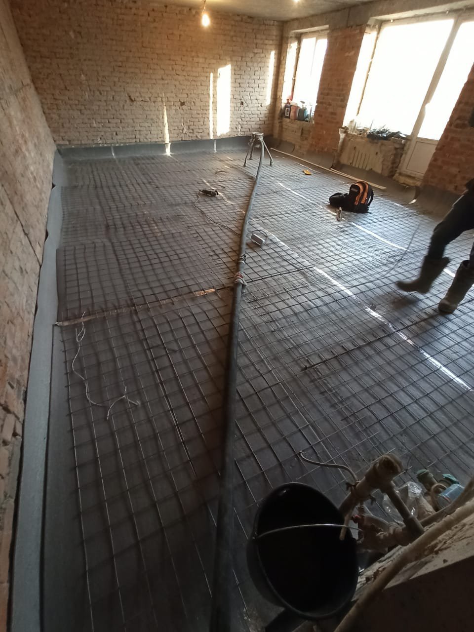 Стяжка пола на тёплый пол в коттедже
