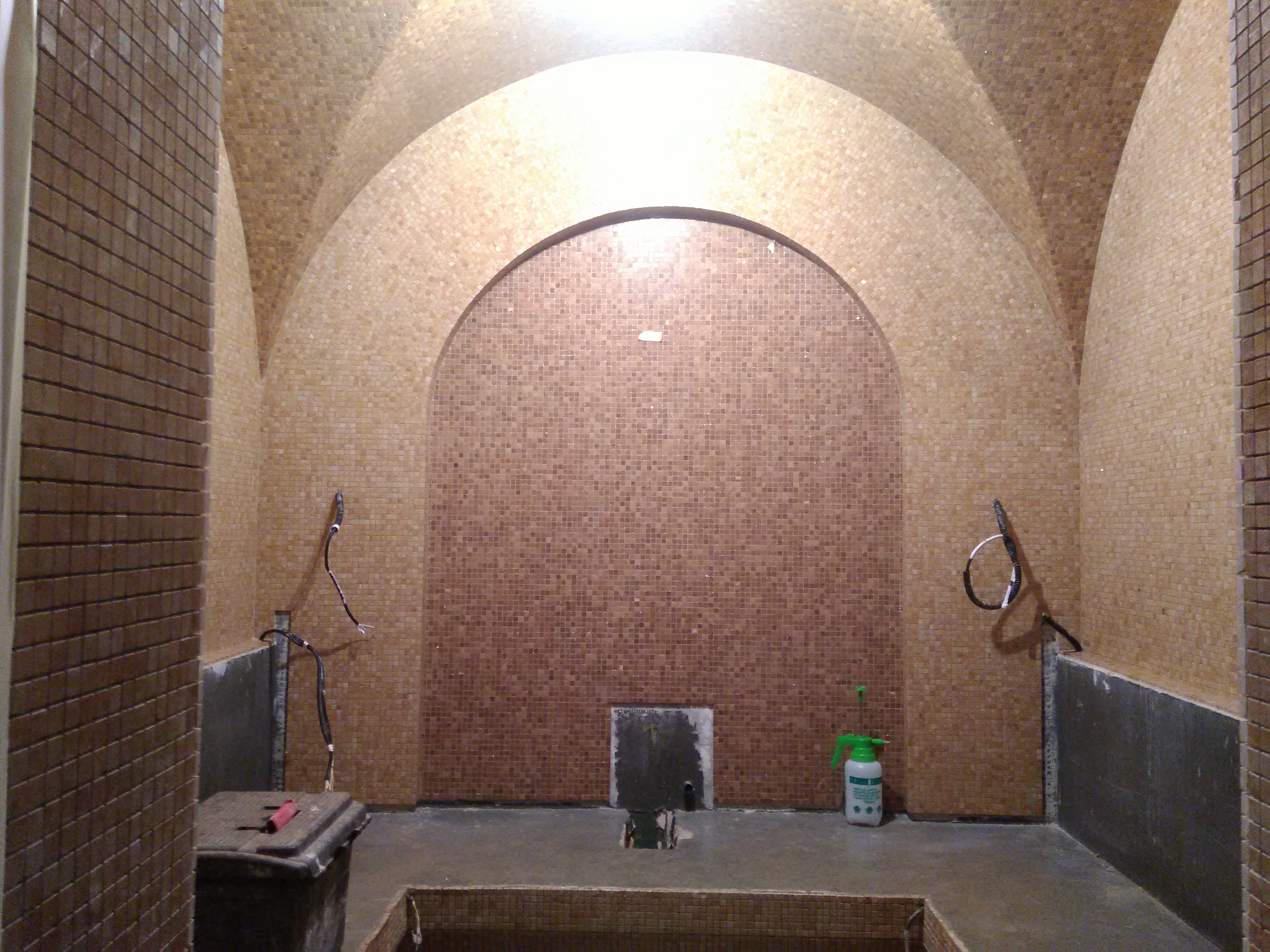 По дизайн-проекту уложена керамическая плитка 12×18 см, мозаика, кераморанит (15×60 см) и выполнена эпоксидная затирка.