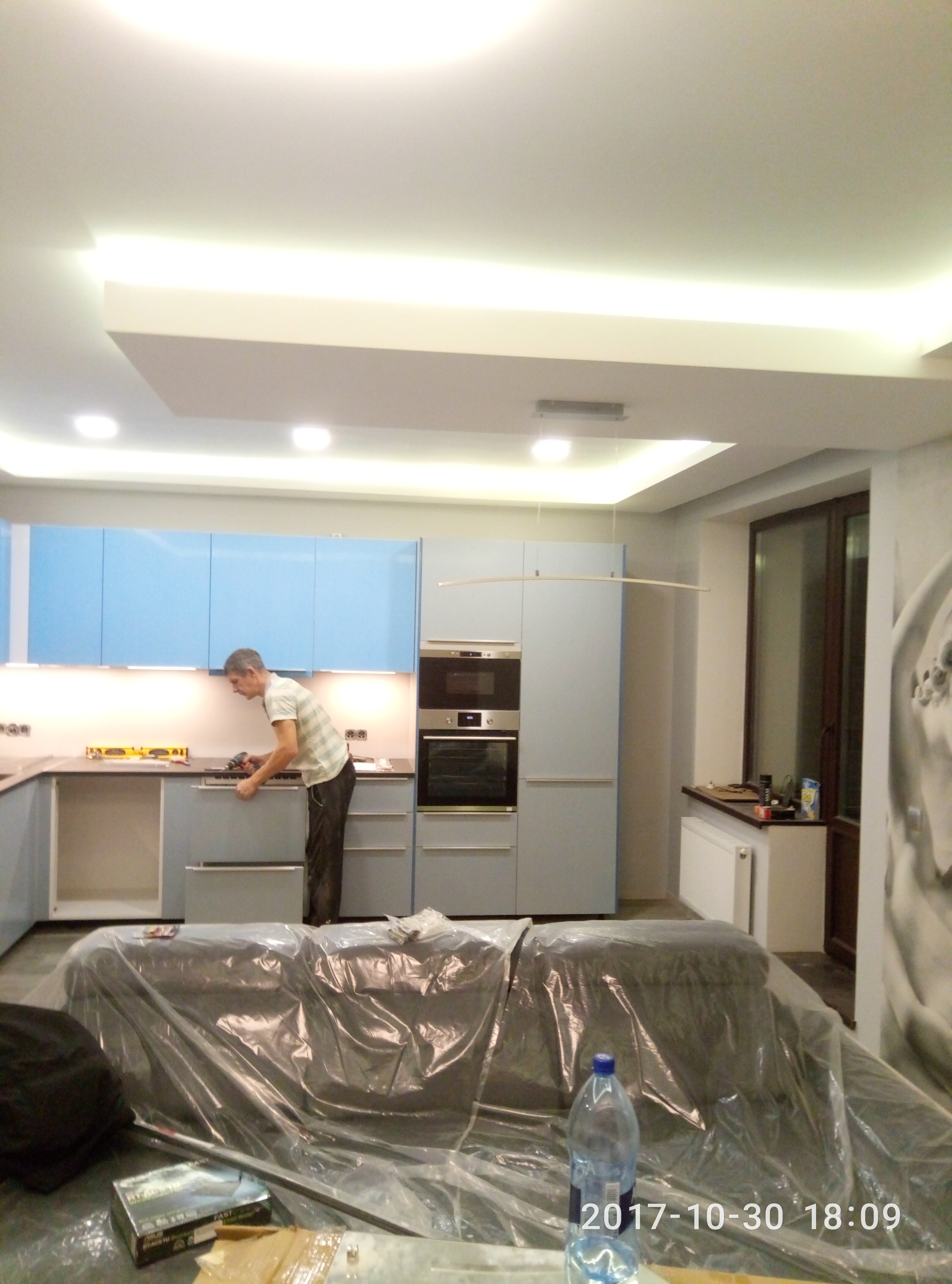 Заказывали ремонт кухни (штукатурка, шпаклевка, оклейка обоями, настил линолеума + часть электромонтажных работ). Работа выполнена в срок, качество отделочных работ хорошее. Недостатки только в паре моментов — не очень аккуратно замазаны штробы и немного неровно подрезан линолеум. В остальном, все в порядке, особенно порадовало качество оклейки обоев.